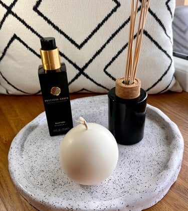 I had this sort of mindset until I actually made one myself...Now I can say that ceramic pots, dishes, vases trays etc are the most universal items that you can use in so many different ways in your home. All you need to do is turn on some creativity on. One of my most favourite items to style is a tray. When making this particular one I actually had no certain purpose or place in mind dedicated to it, I just thought it would be a good center piece in my living area, to place candles or bottles with scented sticks.